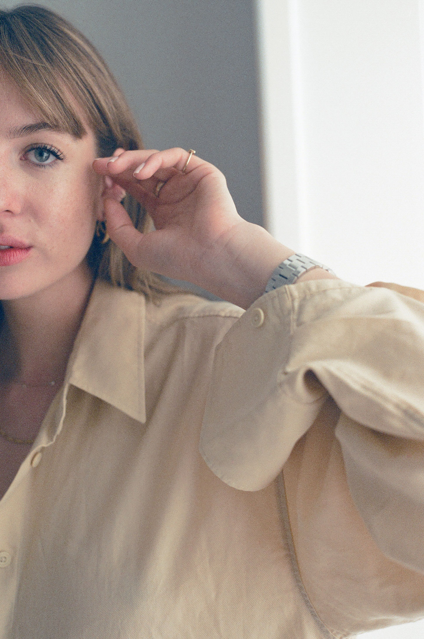 Shirt from Uniqlo, necklaces from Roxanne First x Ropes of Holland and Pernille Croydon.